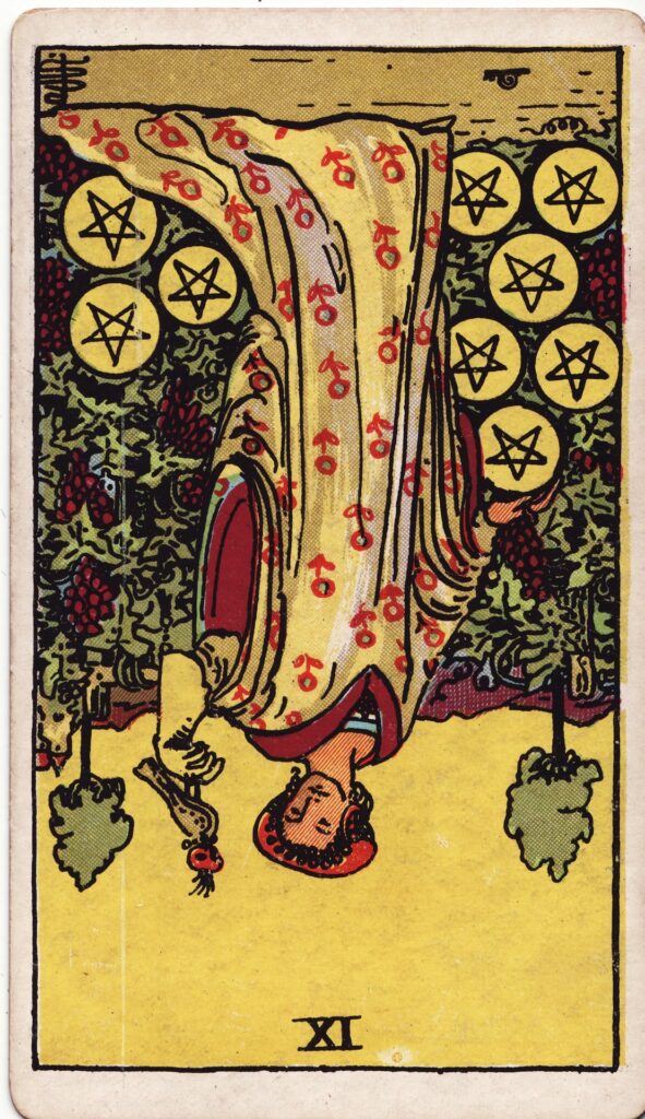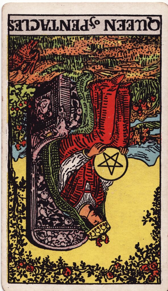 ペンタクルのクイーン【逆位置】凶!物質主義と愛情の欠如を示唆