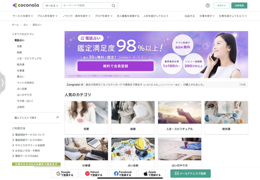 「もう占い師に傷付けられたくない…」と思っている方には、ココナラ電話占いがおすすめです