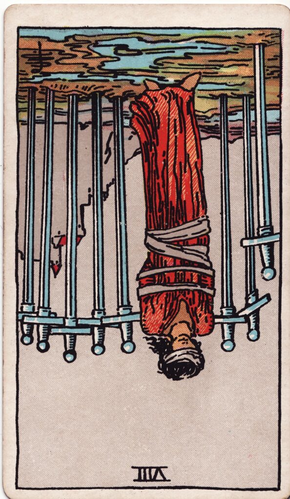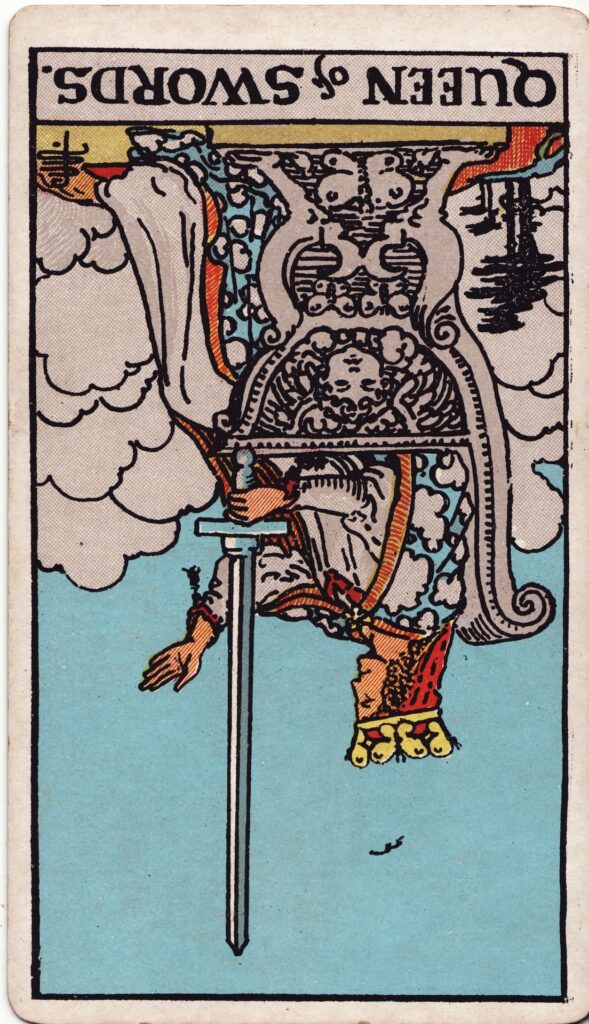 ソードのクイーン【逆位置】凶!冷酷さと偏見、感情の抑圧による問題を示唆
